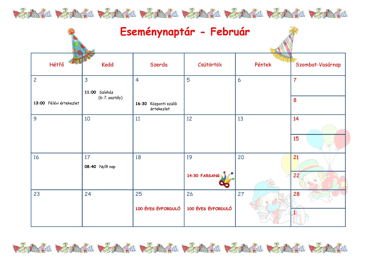 Eseménynaptár - 2026. február